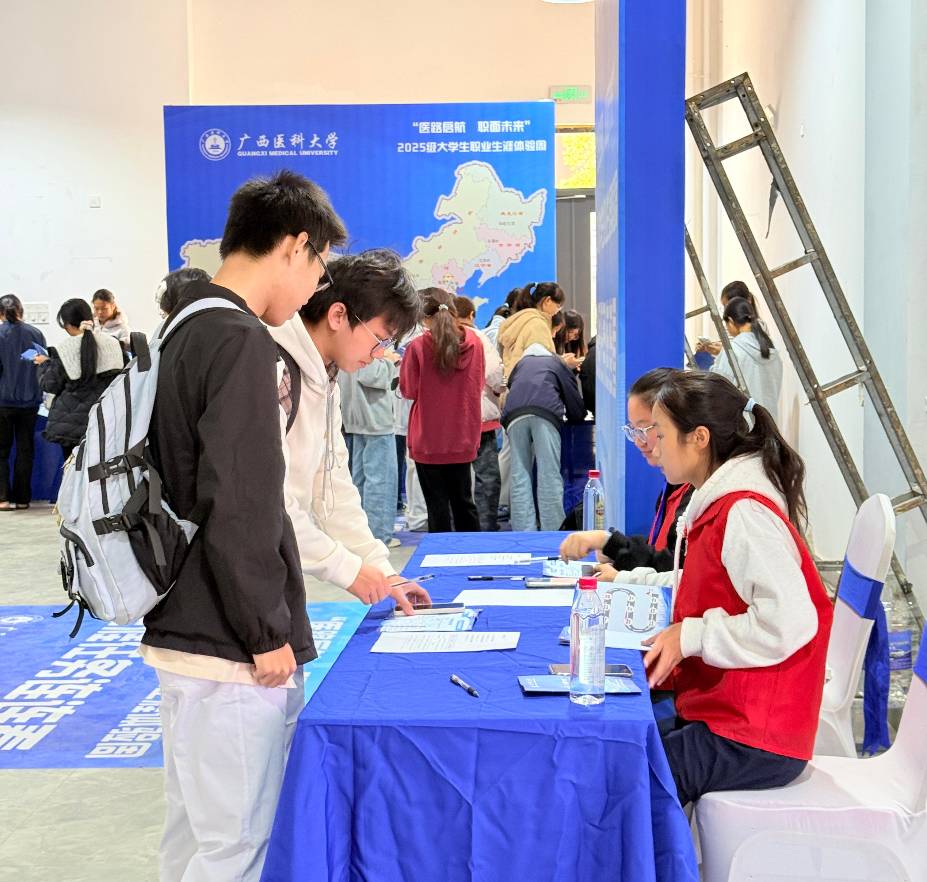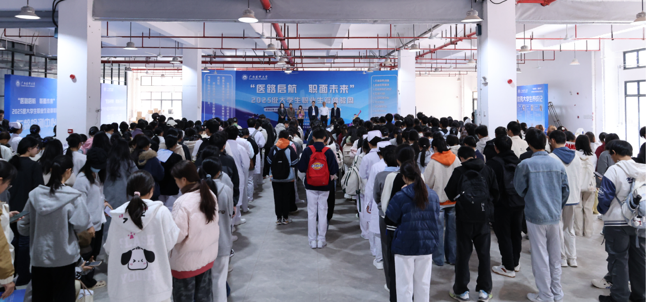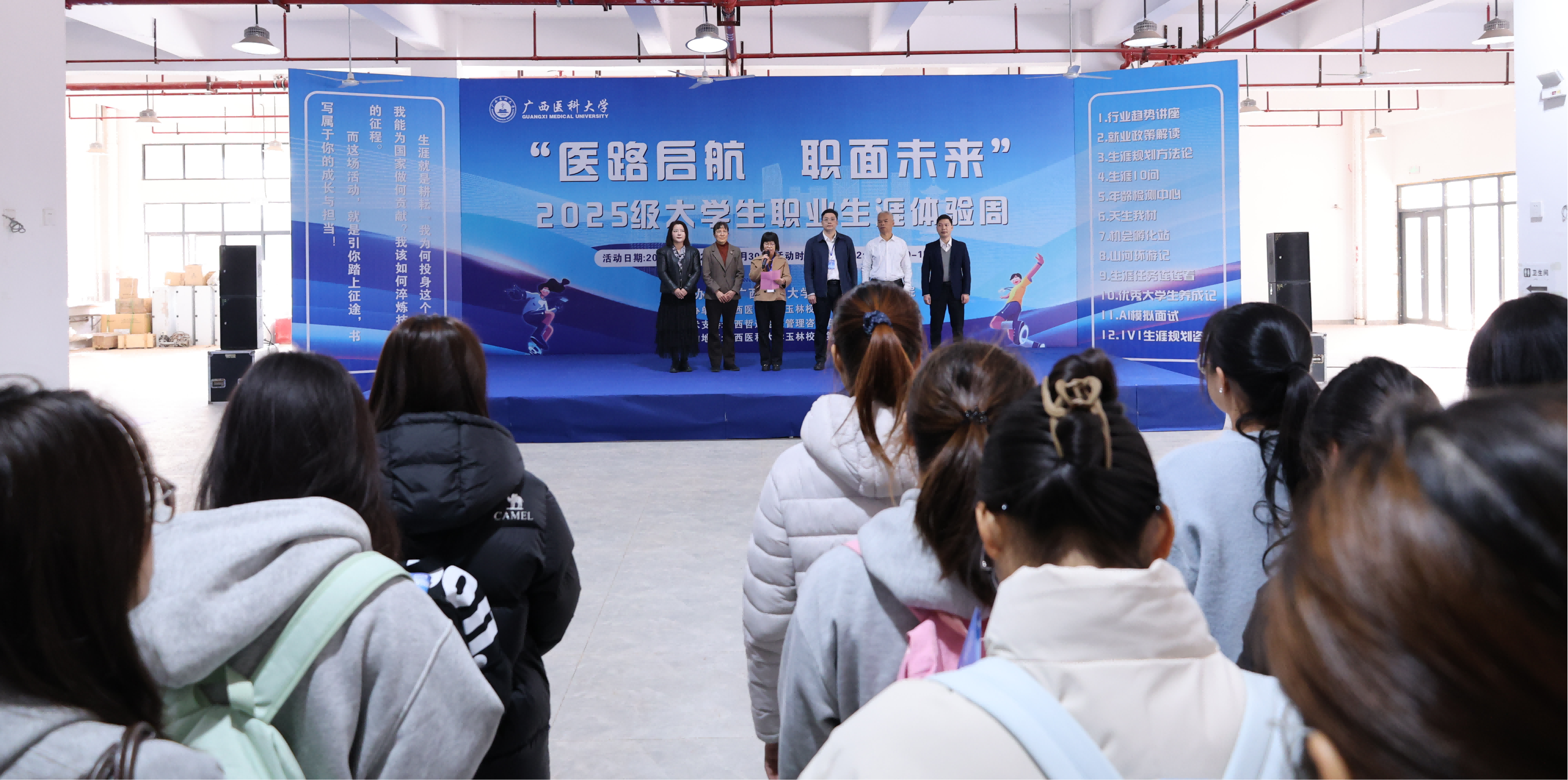11月28日,由高等职业技术学院主办、玉林校区协办的“医路起航 职面未来”2025级大学生生涯就业体验周活动在玉林校区启动。高等职业技术学院副院长莫税英一行、玉林校区招生就业办、辅导员及300多名学生代表共同参加了启动仪式。