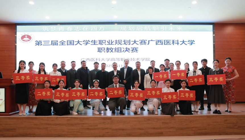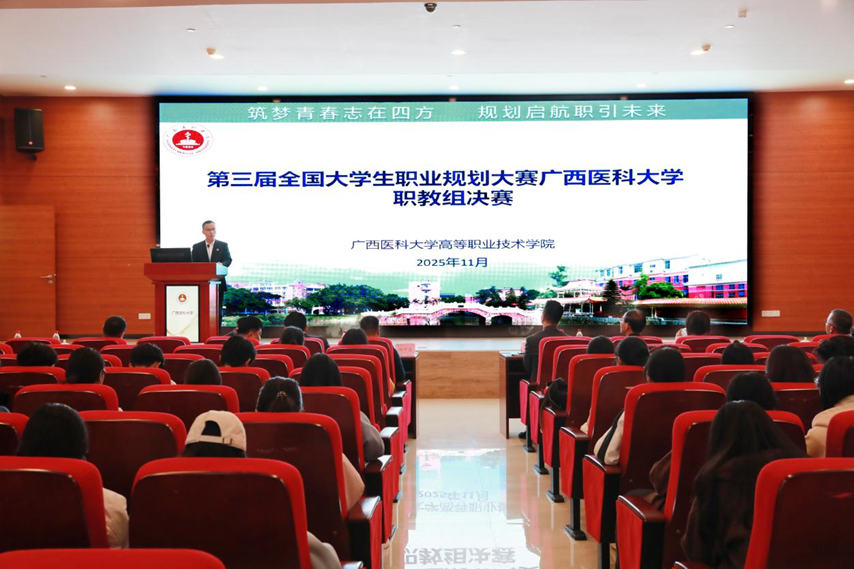 11月29日,第三届全国大学生职业规划大赛广西医科大学职教组决赛在我校卓越楼21楼报告厅举行。大赛由学校招生就业处主办,高等职业技术学院承办。高等职业技术学院副院长林展、莫税英以及各相关学院、校外教学点领导、老师及参赛者约200余人参与大赛。