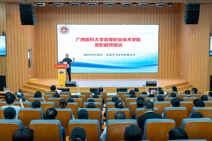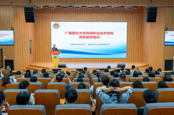 当前位置:学院新闻为了提升教师教学方法与教学艺术,鼓励教师积极探索教学改革创新与实践,高职院于2024年6月30日上午在北海市卫生学校举办了高职教师教学能力提升培训。高职院周素芳院长、谭珍媛副院长及工作人员,北海市卫生学校罗世兴校长、苏积英副校长及工作人员,广西医科大学护理学院、玉林校区、南宁市卫生学校、钦州市卫生学校、桂林市卫生学校及北海市卫生学校共100多名授课教师参加了此次培训。培训由谭珍媛副院长主持。
