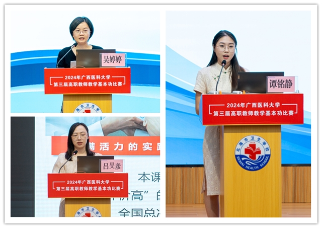 培训会上,首先由在2024年广西医科大学高职教师教学能力大赛中荣获特等奖的谭铭静及一等奖的吴婷婷、吕旻彦三位教师分享了各自的教学经验及从备赛到比赛的心路历程;接下来,高职教学督导组组长林军教授从“生命影响生命,灵魂撬动灵魂”的视角,强调了教学情怀的重要性;最后,韦义萍教授以教育教学理论为纲领,从教案设计及PPT实际应用方面,给参培教师许多新的启迪。